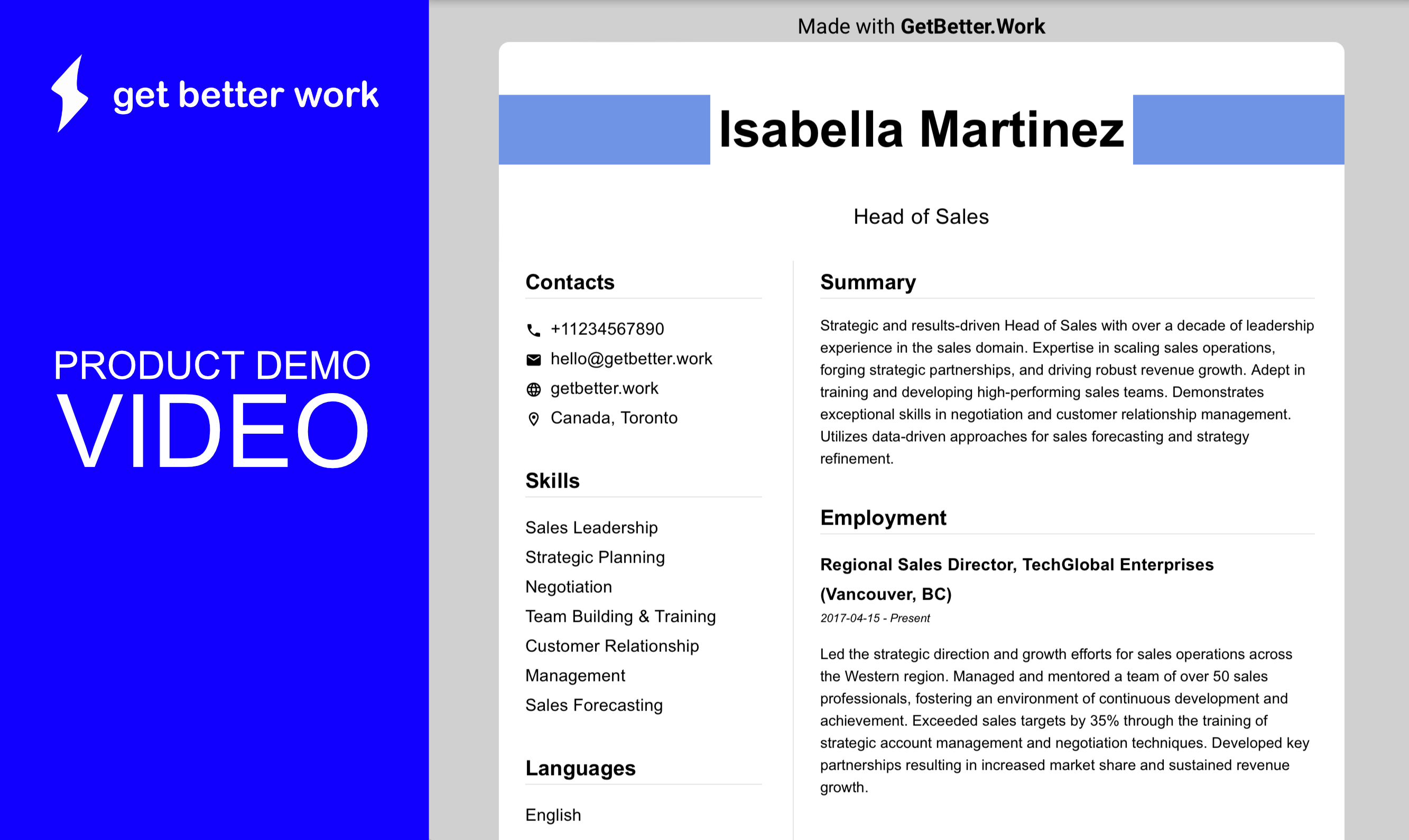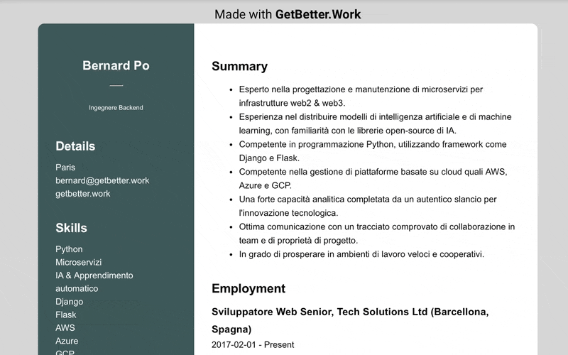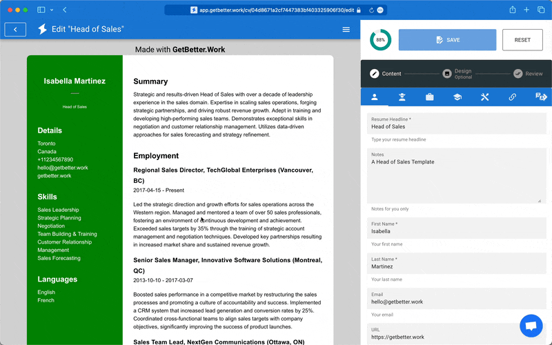 Moreover, you can add a stylish link to your resume, such as "my-resume.getbetter.work".